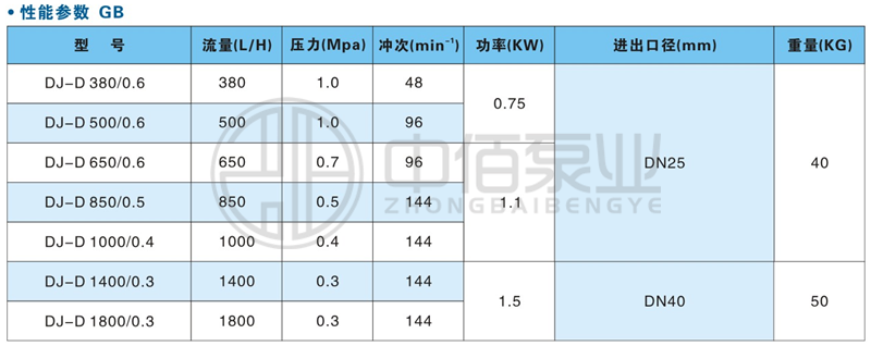 DJ-D型機械驅動隔膜式計量泵--主要參數