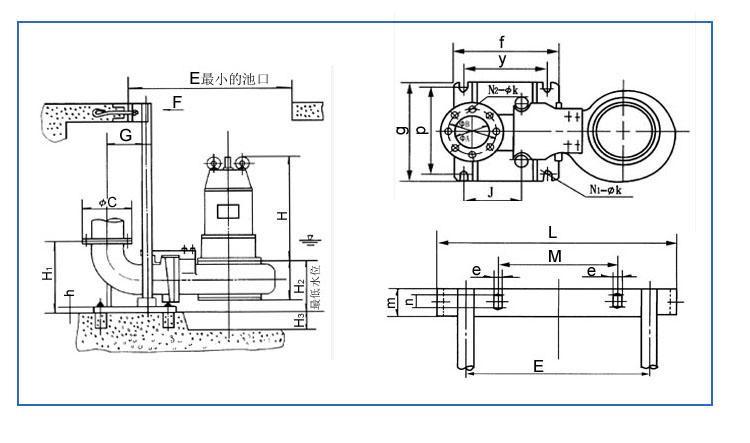 2、無內(nèi)自流循環(huán)冷卻系統(tǒng)的泵,電機(jī)部分露出液面不起過1/3。